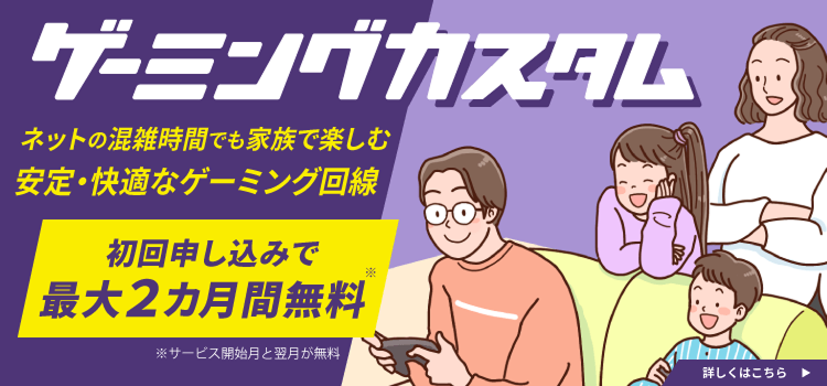 低下を感じるご家庭の場合は、10ギガメニュー+ゲーミングカスタムで通信速度を強化しておくことがおすすめです。